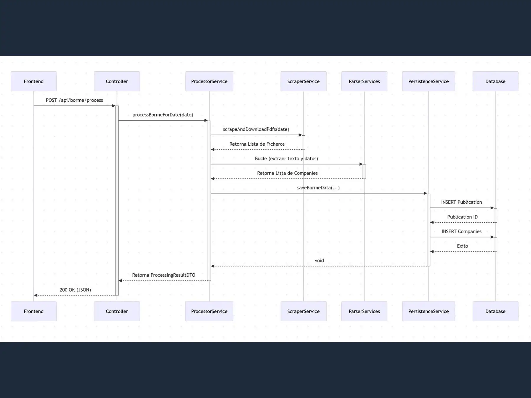 Diseñamos y creamos una base de datos PostgreSQL, gestionando las migraciones y cambios de esquema con Flyway. Desarrollamos e implementamos, por ejemplo, filtros combinados (multi-campo con diversos parámetros) que requerían consultas complejas. Gestionamos la paginación y caché de datos.