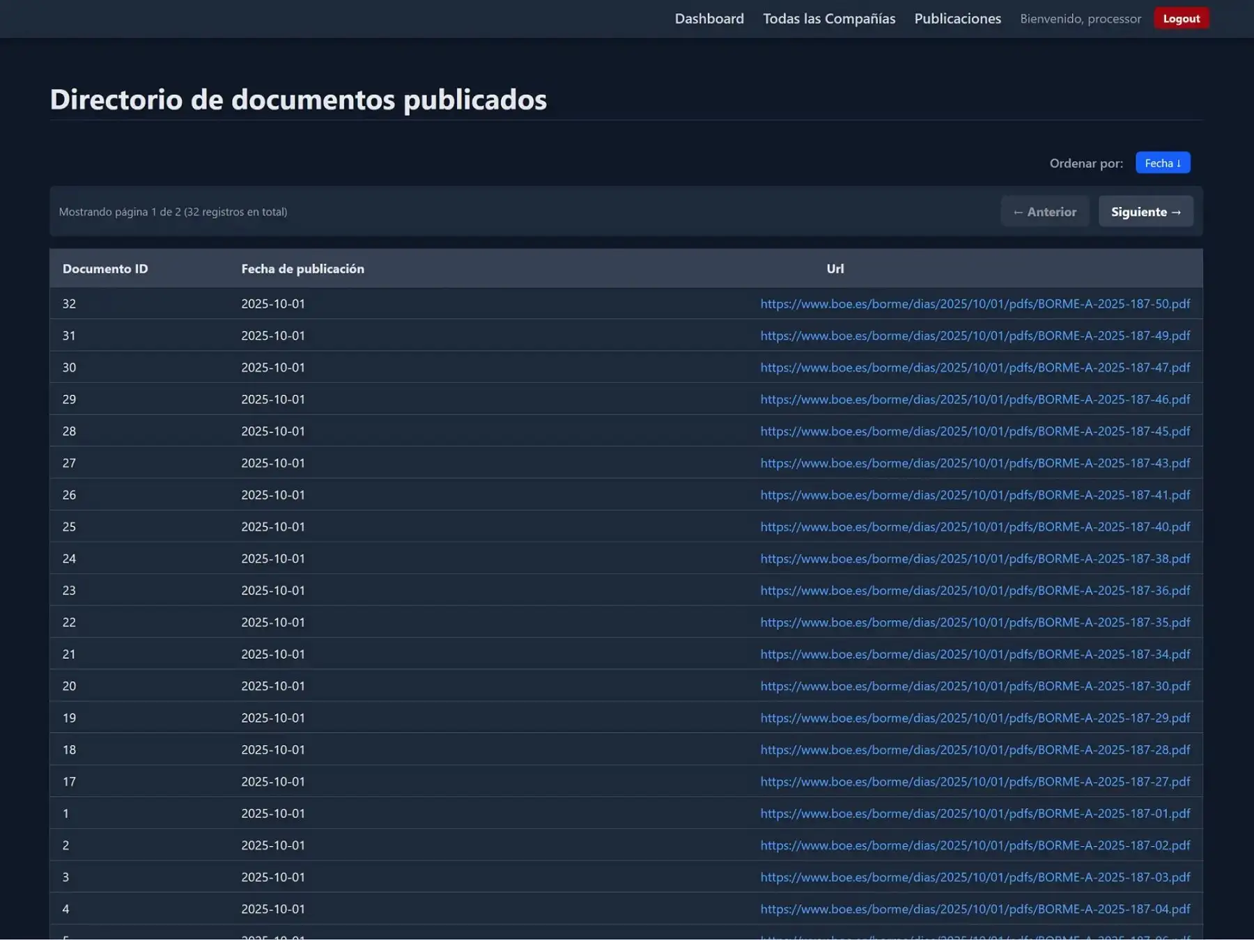El mayor reto fue análizar las entradas del BORME y mostrar los datos del modo más adecuado. No se trataba solo de "scrapear", sino de un proceso iterativo: 1. Obtener los datos en bruto. 2. Analizar el "ruido" (por ejemplo PDFs de índices, no necesarios) y optimizar el scraper para descartar lo que dificultase el proceso. 3. Aplicar Regex para extraer los datos correctos en un formato estructurado.